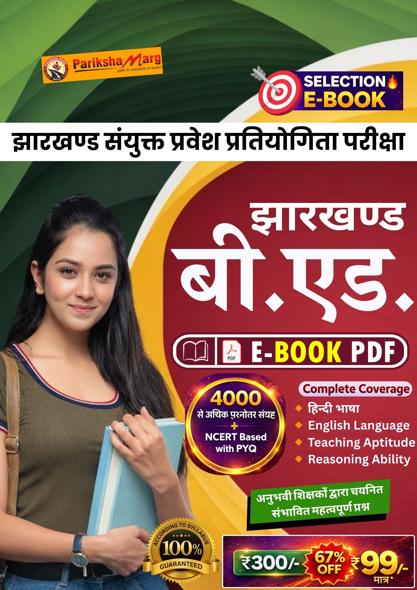 यह ई-बुक विशेष रूप से झारखंड संयुक्त प्रवेश प्रतियोगिता परीक्षा (Jharkhand B.Ed Entrance Exam) के नवीनतम सिलेबस और पैटर्न के अनुसार तैयार की गई है। इसमें 4000+ महत्वपूर्ण प्रश्नों का संग्रह शामिल है, जो आपकी तैयारी को मजबूत आधार प्रदान करता है।
