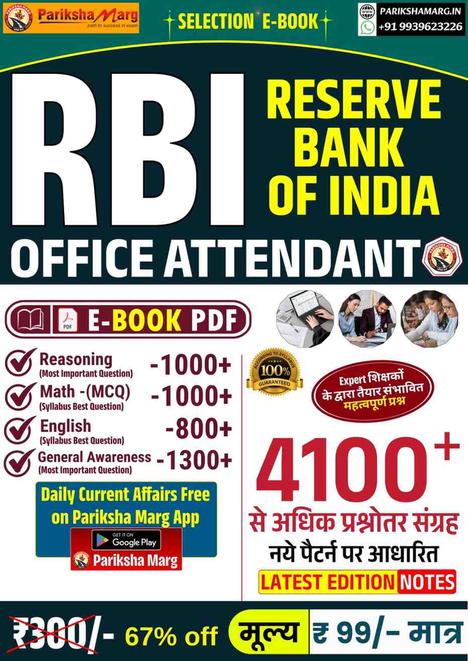 इसी ज़रूरत को समझते हुए Pariksha Marg लेकर आया है 👉 RBI Office Attendant E-Book PDF (Selection E-Book)